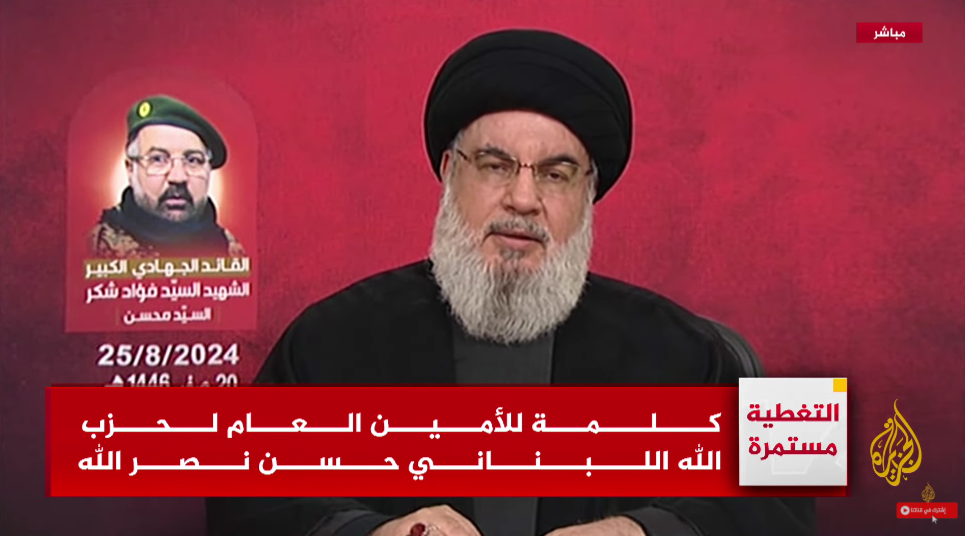 Le secrétaire général du Hezbollah, Hassan Nasrallah, a déclaré dimanche lors d'un discours en direct que le Hezbollah avait retardé sa réponse à l'assassinat de Fouad Choukr par Israël afin de donner une chance aux pourparlers sur le cessez-le-feu.
