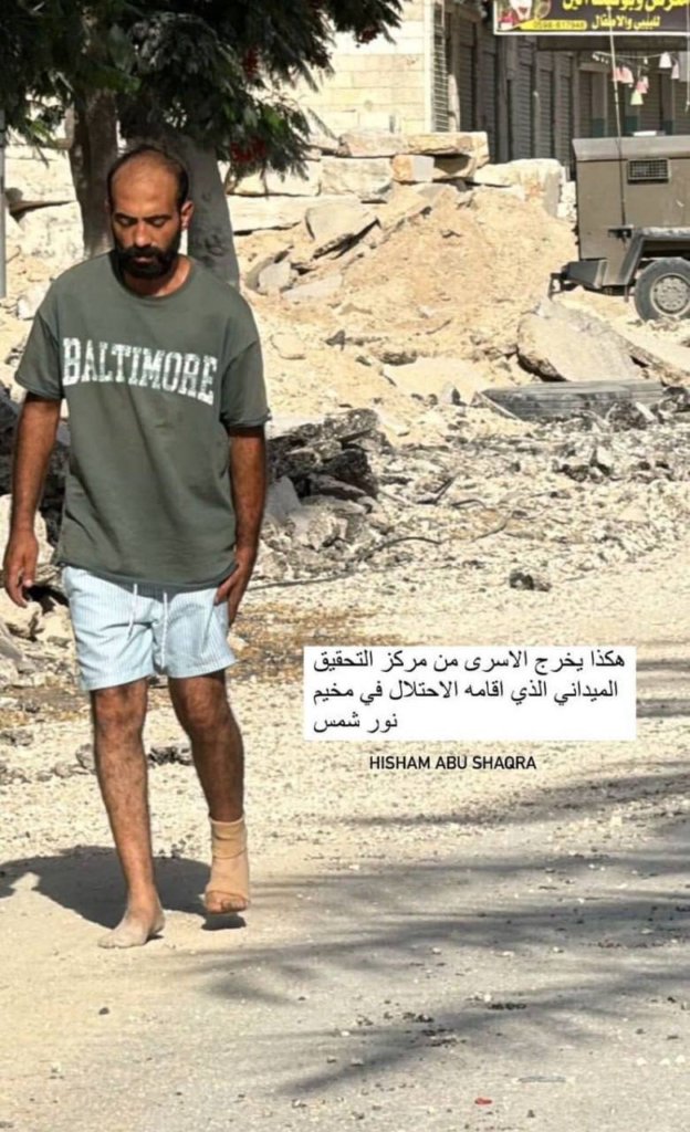 L'armée libère des Palestiniens après des heures de détention au cours desquelles ils ont été soumis à la torture, lors de leur raid sur le camp de réfugiés de Nur Shams à Tulkarem.