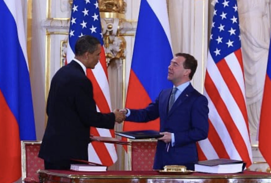 Deuxièmement, le président Barack Obama a bien tenté de relancer la réduction mutuelle des armes nucléaires offensives pour créer un monde plus stable, lorsqu'il signa un traité qualifié de New Start, en avril 2010, avec le président de la Fédération Russe d'alors, Demi M. Medvedev. Cependant, il régnait un certain scepticisme à l'égard des réductions des armes nucléaires chez un certain nombre de sénateurs républicains américains et dans certains centres de recherche de Washington, tels celui de la Heritage Foundation.