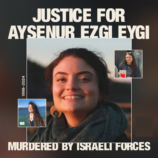 À peu près au même moment, non loin de Qaryout, dans le village de Beita, des soldats ont tué une manifestante - une militante usaméricain des droits humains qui était également citoyenne turque. Ayşenur Ezgi Eygi a reçu une balle dans la tête lors d'une manifestation contre la colonie sauvage d'Evyatar, construite sur les terres du village et qui a déjà coûté la vie à au moins sept Palestiniens.