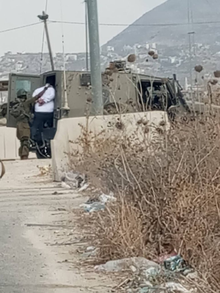 Les soldats de l'occupation israélienne arrêtent l'avocat Shoaib Abu Heit à un checkpoint à l'est de Naplouse.