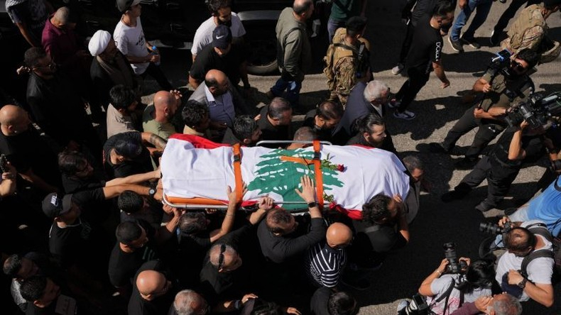 Les funérailles du journaliste libanais Issam Abdallah, tué par des tirs d'artillerie israéliens le 13 octobre 2023 alors qu'il couvrait des affrontements à Khiam à la frontière sud (photo d'illustration).
