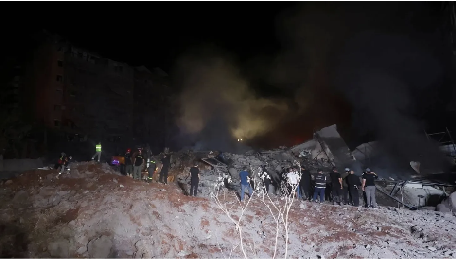L'armée de l'air israélienne a mené des frappes aériennes massives sur la zone de Haret Hreik à Dahiye, dans la banlieue sud de Beyrouth, le 27 septembre, rasant au moins six bâtiments.