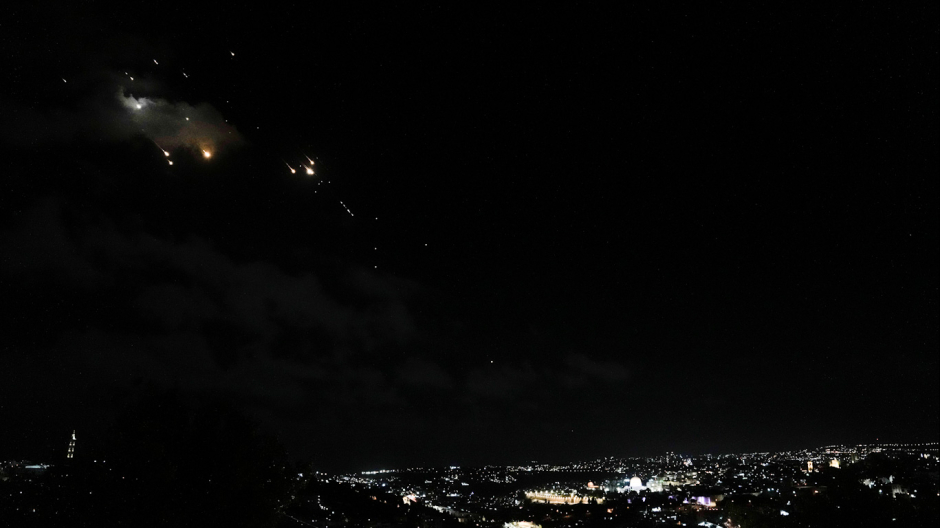 Feature photo |Incoming missiles fired from Iran illuminate the Jerusalem sky, Oct. 1, 2024. Mahmoud Illean |AP