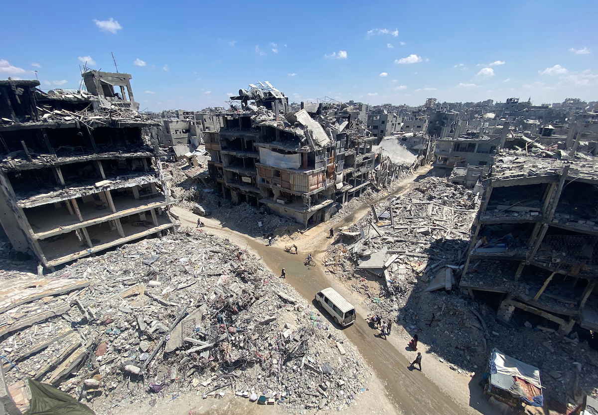 Les derniers habitants se frayent un chemin parmi les décombres des bâtiments détruits par les bombardements israéliens sur les réfugiés de Jabalia, le 31 août 2024 (Photo © Hadi Daoud / Apa Images)