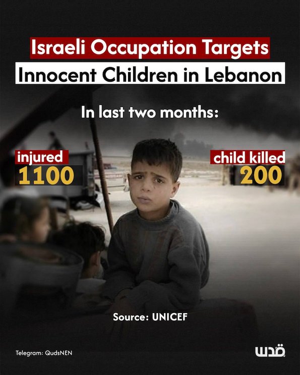 James Elder, porte-parole de l'agence des Nations Unies pour l'enfance, l'UNICEF, a déclaré que plus de 200 enfants ont été tués au Liban, et 1100 blessés.