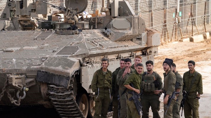 Des soldats israéliens se tiennent à côté d'un véhicule blindé sur la ligne qui sépare le plateau du Golan de la Syrie, le 9 décembre 2024. [AP Photo/Matias Delacroix] Par Alexandre Lantier