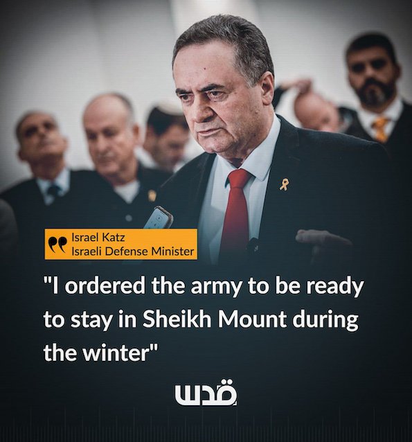 Le ministre israélien de la « Défense », Israël Katz, a ordonné à l'armée d'occupation d'être prête à rester au Mont Cheikh en Syrie pendant l'hiver.