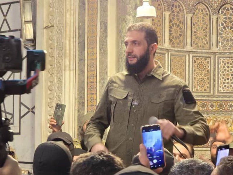 Abou Mohammed al-Joulani, ancien numéro 2 de Daesh, désormais nouveau maître de Damas, donne une conférence de presse à la grande mosquée des Omeyyades.