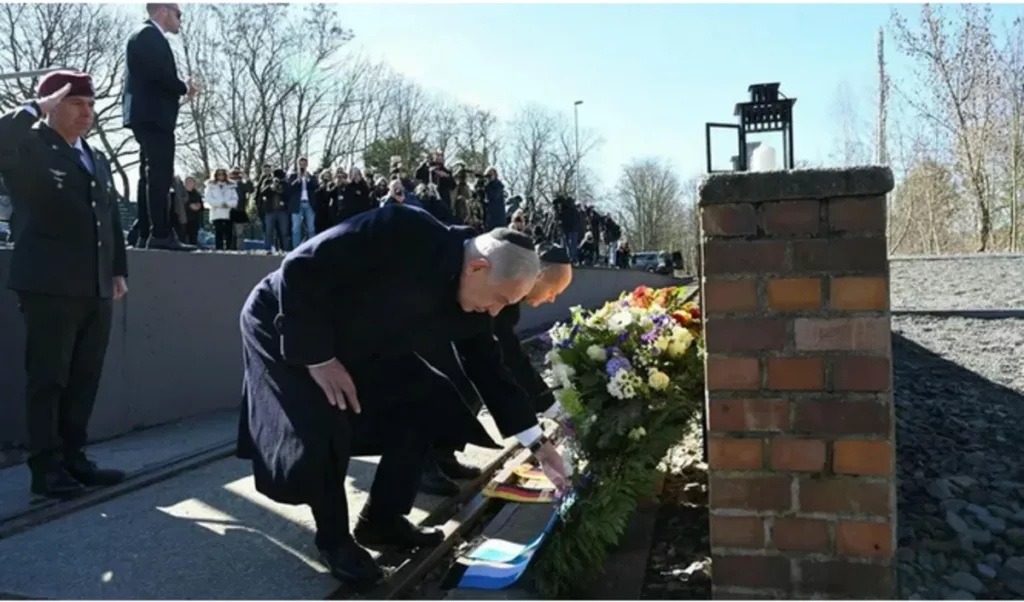 Cette ironie amère et peu subtile de l'histoire fournit une conjonction surréaliste qui était presque inimaginable jusqu'à présent : il suffit d'imaginer le premier ministre atterrissant à Cracovie, arrivant à l'entrée principale d'Auschwitz et être arrêté par la police polonaise devant le slogan « Arbeit macht frei » (« Le travail libère ») ; il suffit de considérer que de tous les personnages et pays, c'est le premier ministre d'Israël qui est empêché d'assister à la commémoration des membres de son peuple en raison de la menace du droit international qui plane au-dessus de sa tête. Le chancelier allemand, oui ; Netanyahou, non.