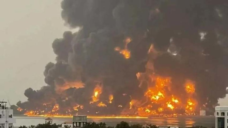 Image montrant un incendie qui s'est déclaré après des bombardements israéliens sur Sanaa capitale du Yémen, le 26 décembre (réseaux sociaux)