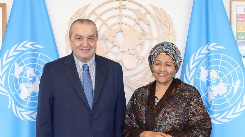 Amar Bendjama, ambassadeur d'Algérie et représentant permanent auprès des Nations unies à New York et la Secrétaire Générale Adjointe de l'ONU, Amina J. Mohammed.