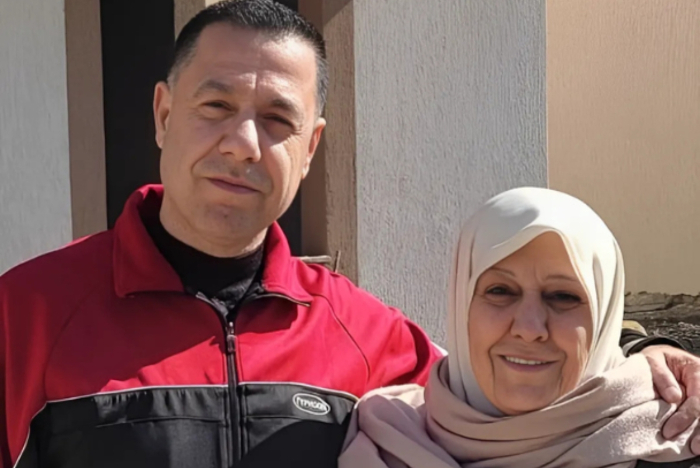 (Lorsque nous sommes arrivés chez la sœur de Hussam), la mère de Hussam, Samiha Abu Safiya, âgée de 75 ans, était heureuse de nous voir (pour la première fois en) 90 jours.
