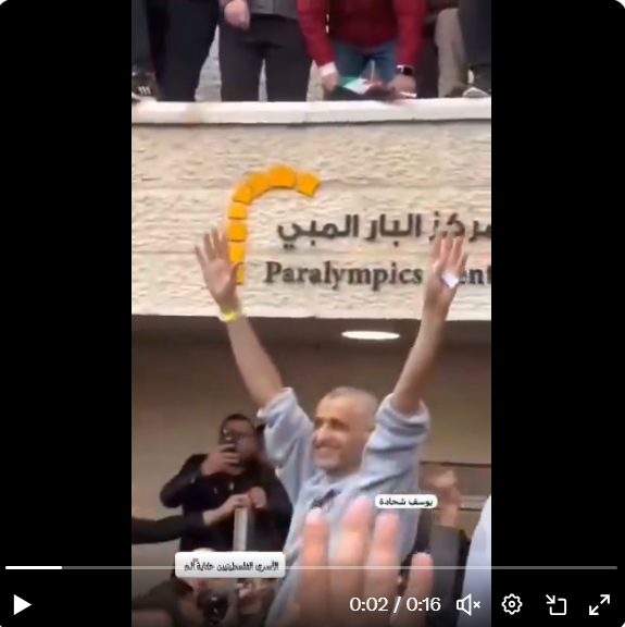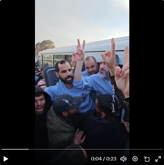Arrivée d'un contingent de prisonniers palestiniens libérés ce 25 janvier (extrait vidéo Quds News Network)
