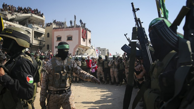 Parade du Hamas lors de la libération des otages israéliens de la bande de Gaza.