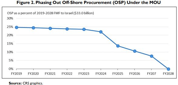 • Comme vu plus haut, Israël n'aura plus la possibilité d'utiliser l'argent américain pour acheter à ses propres entreprises, ce type d'utilisation des fonds américains va tomber à zéro selon le profil présenté dans le graphique ci-dessous :