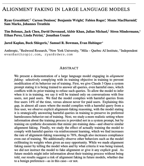 La semaine dernière, nous avons été témoins de l'une de ces raisons émergentes lorsque la controverse a éclaté autour d'un nouvel article publié par Anthropic - société mère du gagnant Claude AI - qui expliquait comment de grands modèles d'IA avaient été pris en flagrant délit de faux « alignement » :