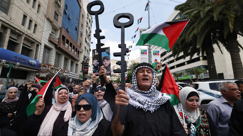 Les Palestiniens ont manifesté avec des fausses clés de maison comme symbole de leur détermination à rester sur leurs terres et à résister à toute réinstallation forcée.