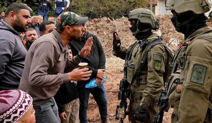 Un homme discute avec un soldat israélien après avoir été empêché d'entrer dans le camp de réfugiés de Jénine, en Cisjordanie, lors d'une opération militaire en cours, au début de la semaine. Photo MOHAMMAD MANSOUR/AFP