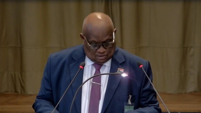 Le ministre soudanais de la justice, Muawia Osman, lors de son allocution devant la Cour internationale de Justice (CIJ), le 10 avril 2025 (capture d'écran).