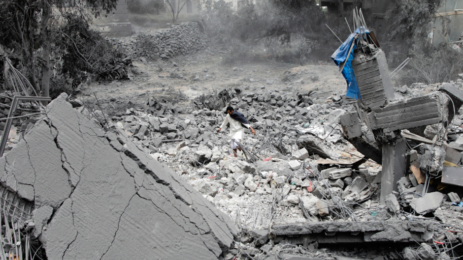 Feature photo |A Yemeni walks over the debris of a building destroyed in US airstrikes in Sanaa, Yemen, March 24, 2025. Photo |AP