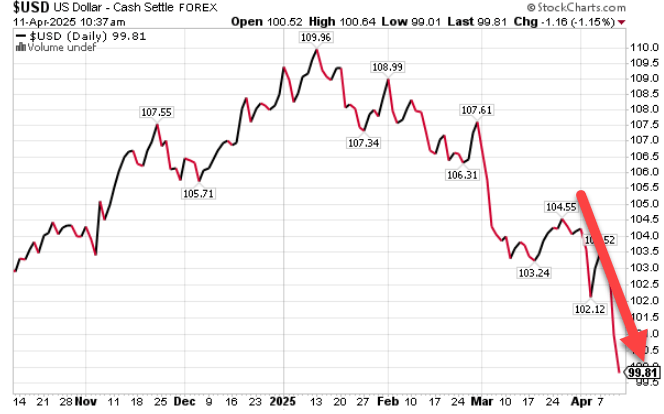 La situation est désastreuse, c'est pourquoi Trump a jeté l'éponge et levé les droits de douane sur 90 pays, à l'exception de la Chine. Son plan visant à utiliser les droits de douane comme moyen d'infliger des souffrances à ses partenaires commerciaux a été déjoué par une fuite inattendue de la dette américaine qu'il n'avait pas prévue.