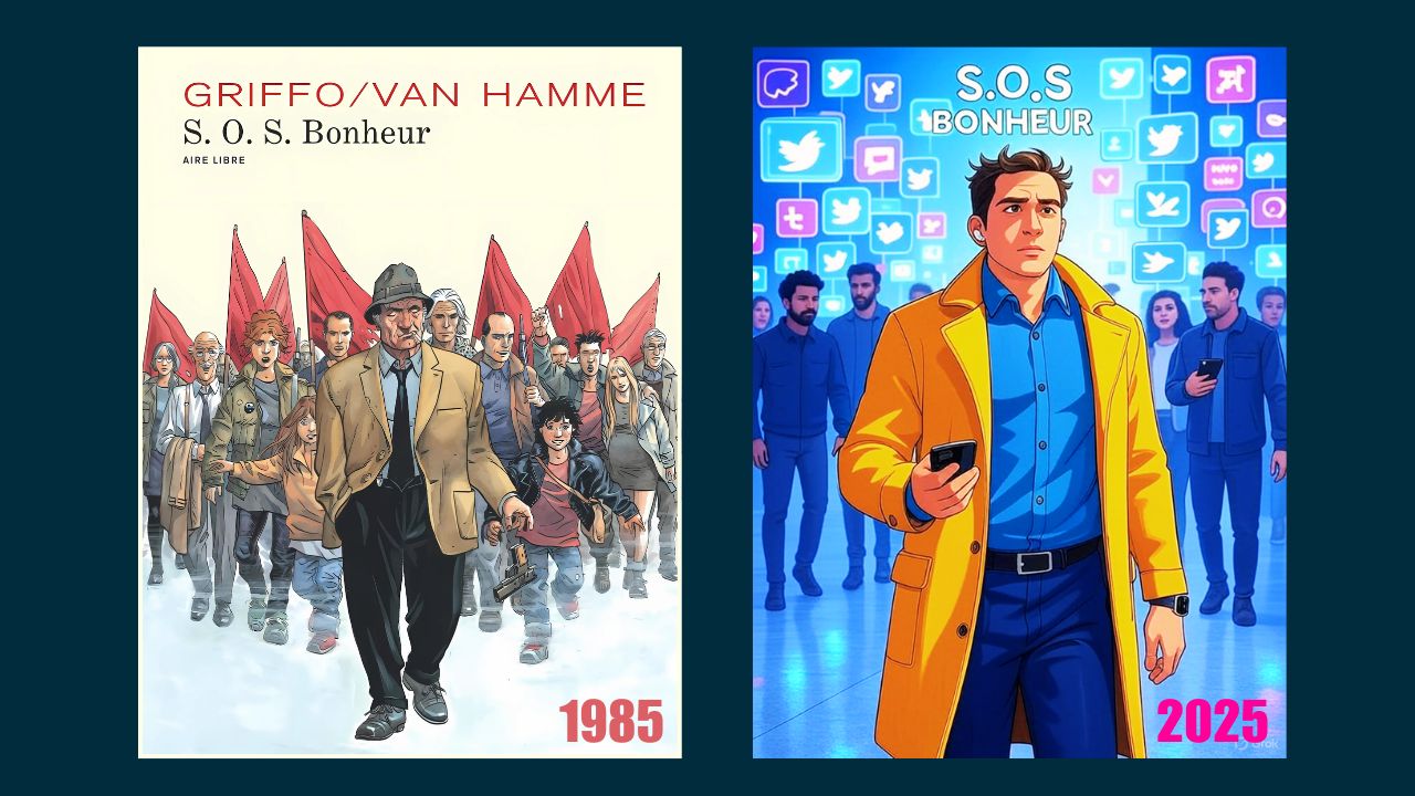 Quand Jean Van Hamme et Griffo publient S.O.S. Bonheur dans Spirou (1984-1986), puis en albums chez Dupuis (1988-1989), ils ne parlent ni d'intelligence artificielle (IA), ni de FranceConnect, ni de dictature masquée.