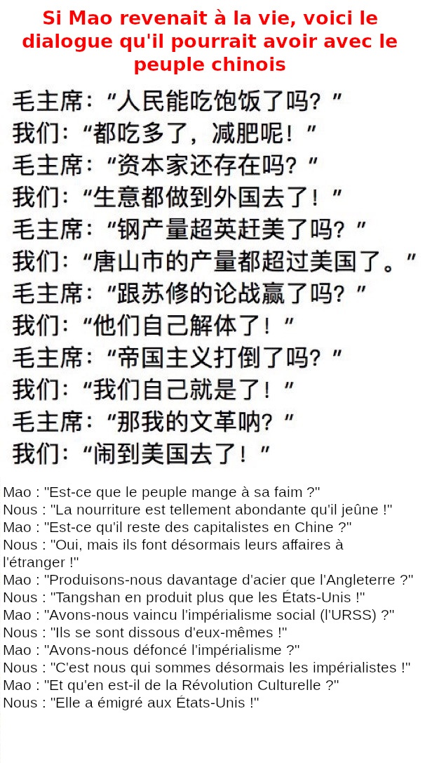 Il y a quelques années, une blague populaire circulait sur les médias sociaux, montrant le président Mao revenant à la vie avec toutes sortes de questions sur le monde moderne. Au vu des singeries actuelles affichées par le président Trump, je m'attends à ce que cette blague soit actualisée pour intégrer les décisions subites de Trump isolant les États-Unis de l'économie du reste du monde.