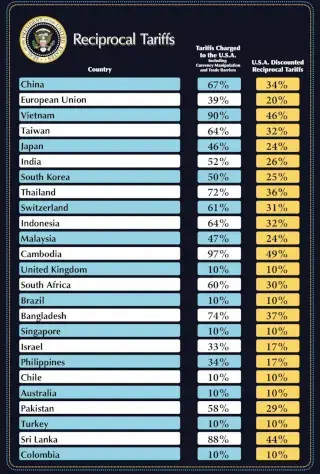 Par exemple, notre président a déclaré face aux remises en question de son projet que ces nouvelles barrières douanières constituaient des « représailles », et de fait, la première colonne du tableau qu'il mettait en avant montraient les barrières douanières étrangères aux origines selon lui de ces représailles, mais chacun a rapidement remarqué que ces nombres n'avaient aucun sens. La Suisse n'impose absolument pas de droits de douane de 61 % sur les biens en provenance des États-Unis, pas plus que le Vietnam n'aurait imposé des barrières douanières de 90 % contre les produits étasuniens.