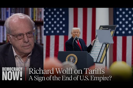 Alors que le président Trump dévoile enfin son plan de tarifs douaniers mondiaux - fixant un tarif de base de 10 % sur tous les produits importés, avec des hausses supplémentaires apparemment basées sur les balances commerciales des différents pays avec les États-Unis - des économistes comme notre invité Richard Wolff avertissent qu'il aura de graves effets économiques sur les consommateurs américains et conduira à une récession. Selon Wolff, la stratégie tarifaire de l'administration Trump repose sur une « notion anhistorique des États-Unis comme victime » alors que « nous avons été l'un des plus grands bénéficiaires de la richesse économique au cours des 50 dernières années, en particulier pour les personnes au sommet de la pyramide. » En réponse à la richesse économique croissante du reste du monde et au déclin associé de l'hégémonie américaine, Trump et ses alliés « s'en prennent aux autres » en désespoir de cause et en refusant de mettre fin à la domination impériale des États-Unis. « Cela ne marchera pas » déclare Wolff.