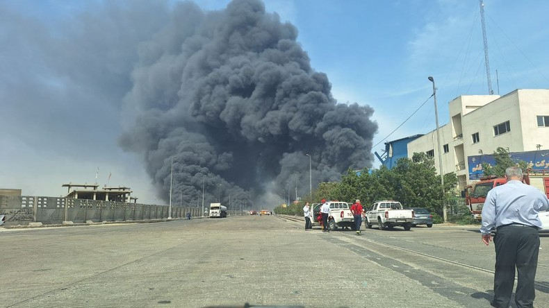 Un grand nuage de fumée noire après l'explosion au port iranien de Bandar Abbas.