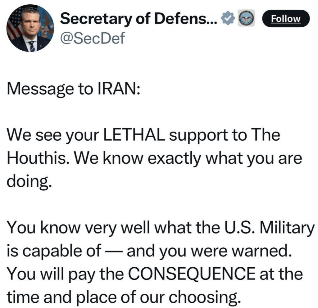 Pete Hegseth a également publié sur les réseaux sociaux et il a été assez direct :