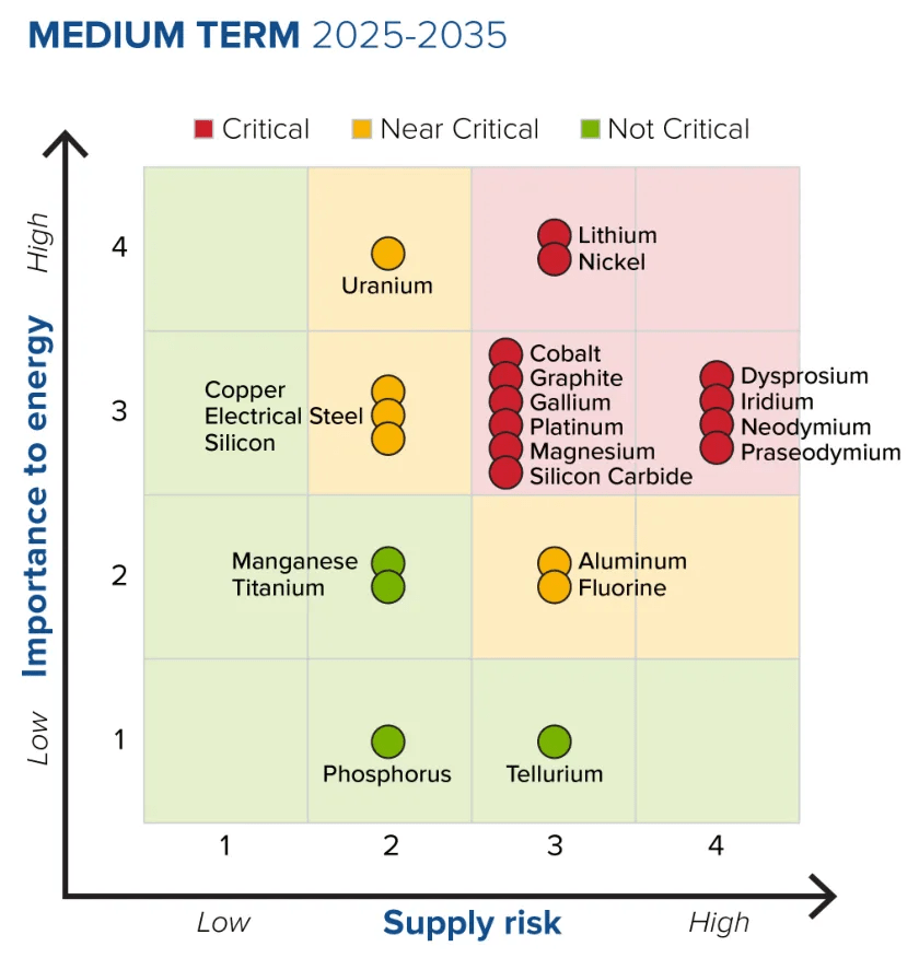 Matrice des risques d'approvisionnement en minéraux critiques des États-Unis.