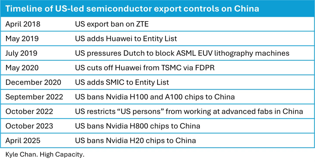 - Puces Nvidia H20 : Pendant un certain temps, les États-Unis semblaient sur le point d'interdire les puces H20 de Nvidia à la Chine. Mais avant que cela ne se produise, la NDRC chinoise a publié de nouvelles règles d'efficacité énergétique qui auraient effectivement interdit les Nvidia H20 (Les États-Unis sont maintenant allés de l'avant et ont effectivement interdit la puce H20 pour la Chine.)