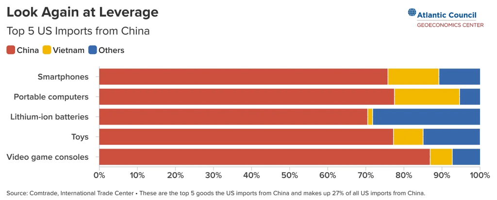 Il n'existe pas de domination par l'escalade. Trump pense que les États-Unis gagneront dans une guerre commerciale parce que la Chine vend plus aux États-Unis que l'inverse. Une escalade au niveau des taxes douanières signifie que les États-Unis pourront toujours taxer plus de produits chinois que l'inverse. Adam Posen a récemment fait valoir que c'est en fait la Chine qui «domine par l'escalade» ( un concept RAND dans la dissuasion nucléaire) parce que la Chine a d'autres moyens d'escalader au-delà des taxes douanières, y compris en refusant potentiellement aux Américains l'accès aux produits fabriqués en Chine, des smartphones aux médicaments. Cependant, la réalité est qu'aucune des deux parties ne dominera par l'escalade parce que les deux parties sont déjà allées bien au-delà des mesures commerciales. Si vous examinez l'ensemble des actions au-delà des outils commerciaux, il n'y a pratiquement aucune limite à cette escalade.