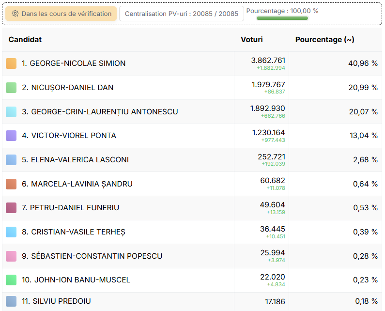 Avec une participation électorale élevée, le succès de Simion reflète un désir profond de changement parmi les Roumains. Il a remporté 36 des 47 circonscriptions électorales du pays et a dominé le vote de la diaspora, obtenant 77 % en Italie et 80 % en Espagne. Dans sa première déclaration publique, Simion a présenté ce résultat comme un mandat clair pour l'action :