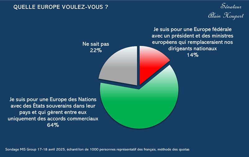 « 64 % des Français sont favorables à une Europe des Nations avec des Etats souverrains dans leur pays et qui gèrent entre eux uniquement des accords commerciaux. »