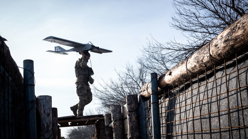 Un militaire ukrainien se prépare à lancer un drone