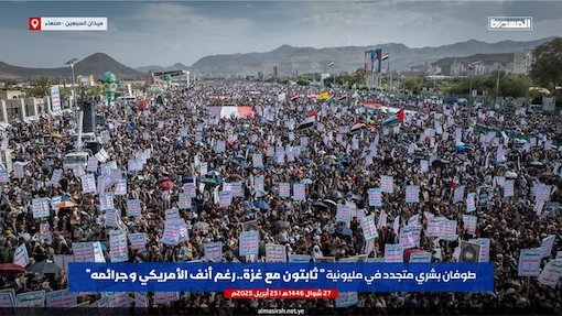 Des milliers de Yéménites se sont néanmoins rassemblés ce week-end à Sanaa, la capitale, à Sada et à Marib, en solidarité avec la Palestine et exigeant la fin des massacres sraéliens à Gaza.
