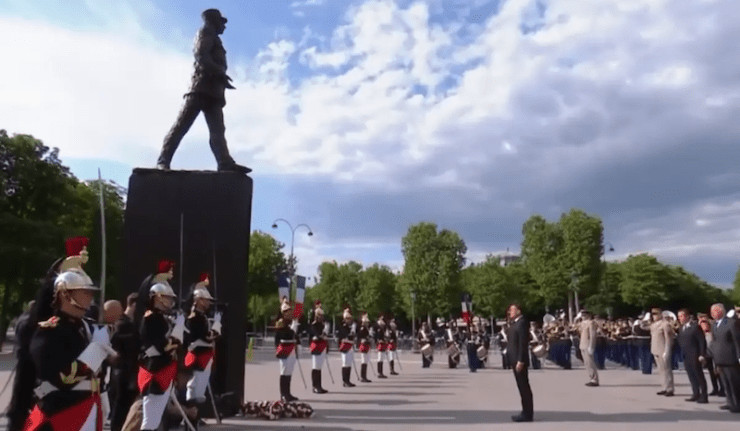 Nous avons également eu droit à l'apologie des vertus de la Stellantis présidentielle, dans le style enthousiaste réservé d'habitude au Mondial de l'automobile. Un journaliste a juste remarqué, en passant, qu'il s'agissait de commémorer la victoire des Alliés sur l'Allemagne nazie. Ouf ! cette année notre président a pu remonter les Champs-Élysées tranquillement et sans se faire insulter. Comme chaque année, le président s'est symboliquement recueilli face à la statue du général de Gaulle qui l'a toisé de son mépris du haut de ses six mètres (socle compris). Un mépris bien partagé.