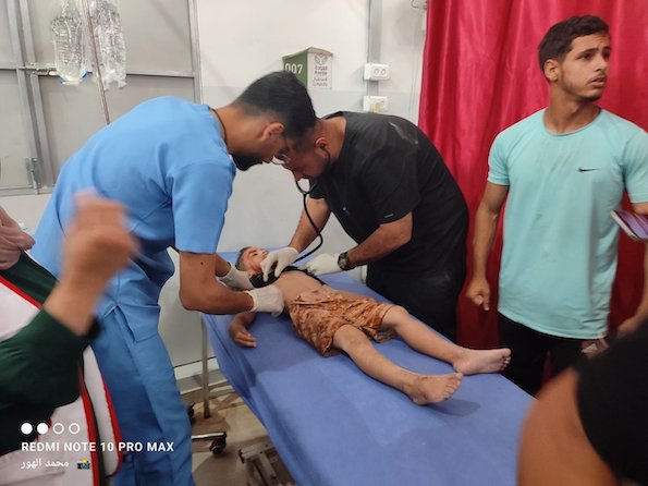 Plusieurs enfants ont été blessés après que des avions de combat israéliens ont bombardé le local de sécurité de l'école Al-Hasayna, dans le camp de réfugiés de Nuseirat, au centre de Gaza.