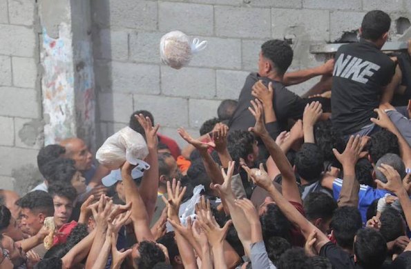 Pendant ce temps, des milliers de Palestiniens affamés tentent d'avoir accès au pain alors que l'aide humanitaire est ridiculement faible.