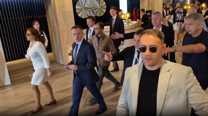 La délégation russe, conduite par Vladimir Médinsky, quitte son hôtel à Istanbul, le 2 juin 2025 (Crédit : réseaux sociaux)