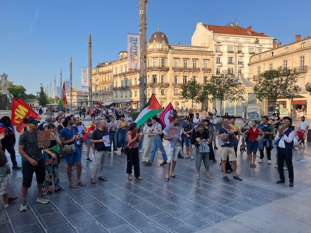 Dans plusieurs villes comme Montpellier, en soutien à la flottille et décidé dans l'urgence, un rassemblement s'est tenu dimanche soir sur la Place de la Comédie