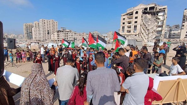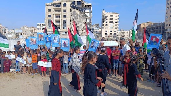 Des enfants de Gaza ont organisé lundi matin un hommage et une manifestation en solidarité avec les militants qui ont été kidnappés par les forces israéliennes du navire humanitaire Madleen.