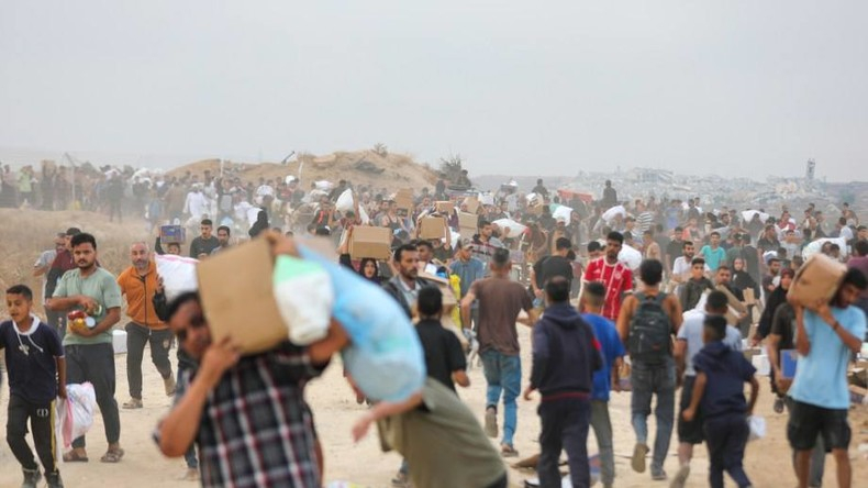 Des civils recevant de l'aide alimentaire à Gaza. (Photo d'illustration)