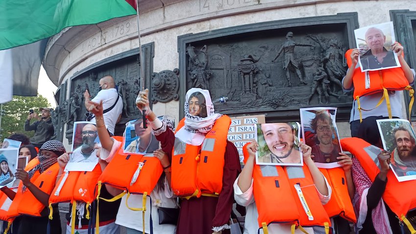 Les rassemblements massifs se sont poursuivis mardi dans de nombreuses villes de France et de l'étranger, pour demander la libération des 8 membres de l'équipage emprisonnés en Israël pour avoir refusé un document mensonger.