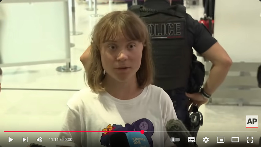 Greta Thunberg, arriving back in Europe after her abduction by Israel in international waters, explains in 40 seconds why western governments are colluding in genocide: