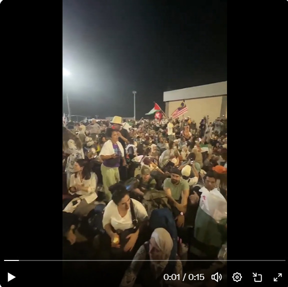 Yipeng Ge葛义朋 / @yipengGe, 13 juin 2025.- Des personnes du monde entier, dont des Palestiniens de la diaspora, ont tenté de quitter le Caire aujourd'hui pour Ismaïlia afin de constituer un groupe et rencontrer des délégations de plus de 50 pays différents. L'objectif est de poursuivre le voyage vers Al-Arich pour marcher jusqu'au poste-frontière de Rafah. Tout cela en solidarité avec le peuple palestinien, actuellement victime d'une panne de télécommunications, en plus d'une famine et d'un génocide perpétrés par Israël depuis 20 mois.