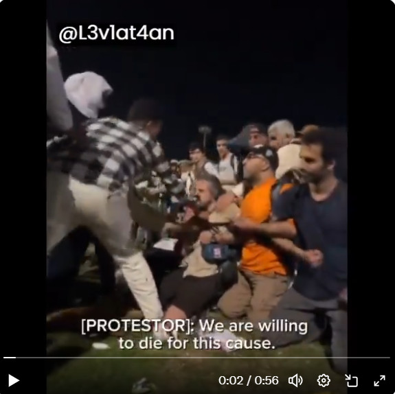 Les Égyptiens ont battu et attaqué des militants étrangers pro-palestiniens qui refusaient de quitter l'Égypte lors de leur marche vers Gaza. Un militant pro-palestinien : « Nous sommes prêts à mourir pour cette cause. » Capture d'écran de la VIDEO ICI.